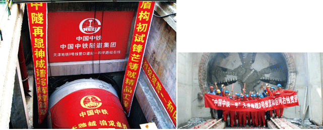 天津地铁项目 粉土淤泥地层。“中铁1号”是我国自主研发制造的第一台具有自主知识产权的复合式土压平衡盾构样机,该机2008年4月25日在河南新乡下线,用于天津地铁3号线10标段营口道站-和平站区间隧道施工,先后下穿著名建筑瓷房子、张学良故居等多座老式标志性建筑物,依托优良的渣土改良系统,沉降量控制在3mm内。本设备最高日进度21.6米,最高月进度560米。