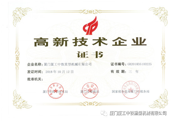 高新技术企业认证标志着厦工中铁的组织管理水平、科研成果转化能力、自主研发生产的产品得到了国家科技部门的认可。高新技术企业认证对于提升行业地位、树立品牌形象以及促进业务增长将带来潜在作用。